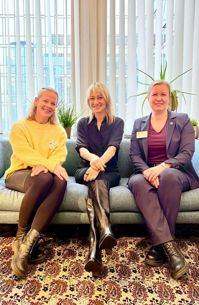 Suomen yrittäjien yrityslainsäädännön asiantuntija Sanna Lempiäinen (oik.) ja Kaupan liiton yrityslainsäädännön ja EU-asioiden johtava asiantuntija Tiina Vyyryläinen vierailivat toimistolla.